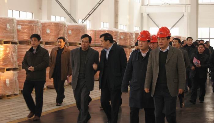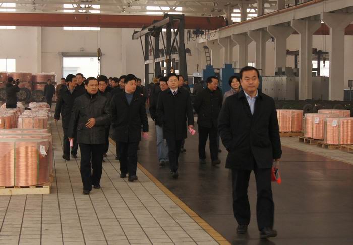 12月21日上午,在市長王中蘇的陪同下,寶應(yīng)縣黨政代表團(tuán)來公司參觀考察。總經(jīng)理駱偉棟熱情接待了代表團(tuán)一行,并介紹了公司的發(fā)展歷程和前景。代表團(tuán)參觀了SCR銅桿車間、復(fù)合銅線車間、銅絞線車間。